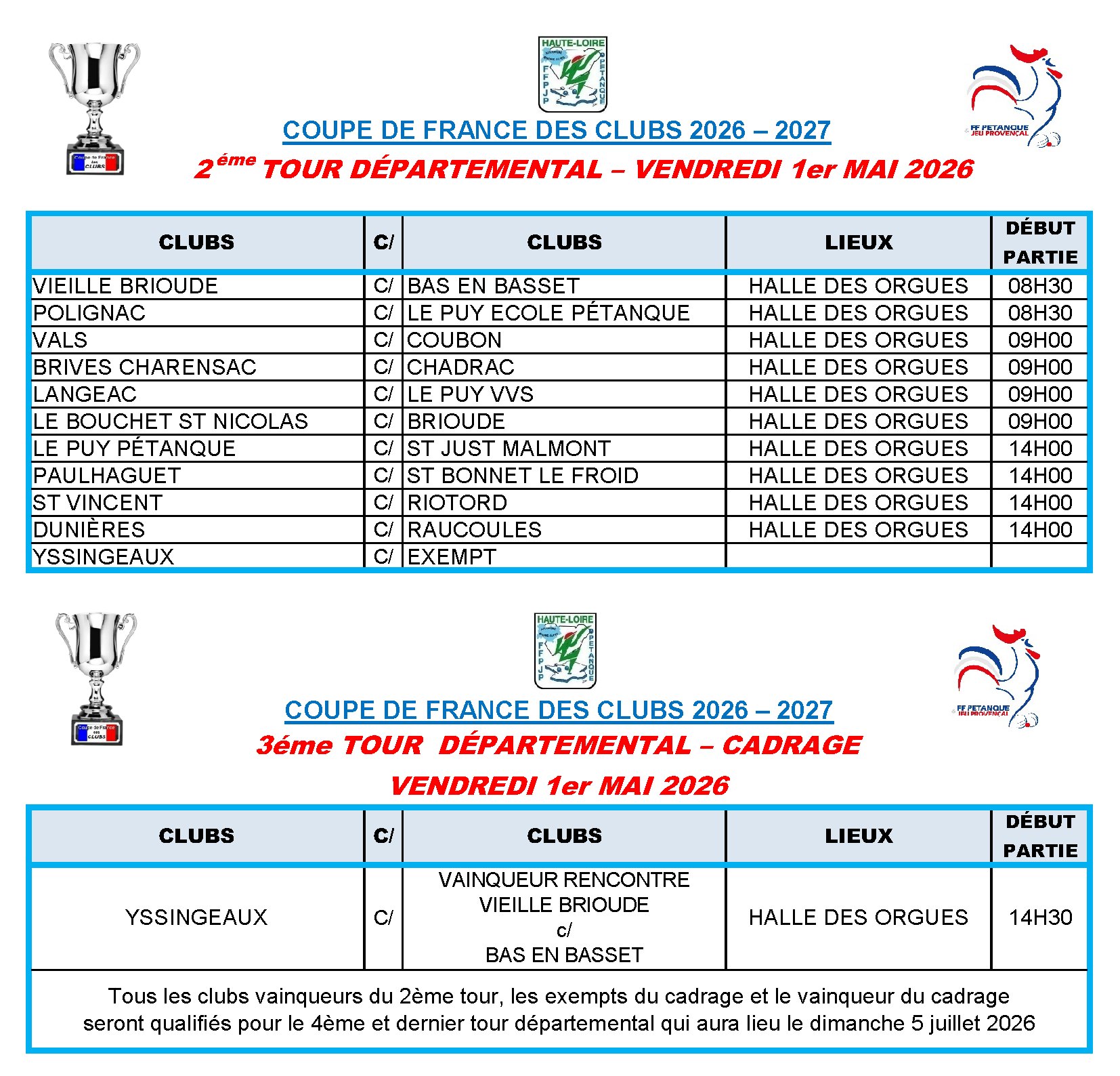 coupedefranceDécouvrez le tirage du 2éme tour et du 3e tour cadrage Coupe de France Départemental Haute-Loire - à jouer le 1er mai - clic sur la coupe